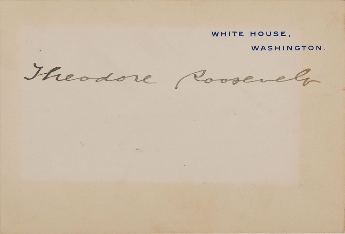 White House card signed in black ink by Roosevelt. In fine condition, with light soiling and irregular toning to the front, and old mounting traces on the reverse.