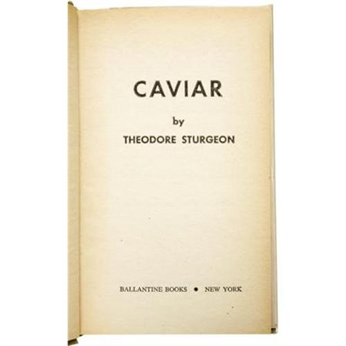 <B>Theodore Sturgeon: <I>Caviar</B></I></B></I> (New York: Ballantine Books, Inc., 1955), 167 pages, light brown cloth with blue spine lettering, 12mo (4.5" x 7.5"), dust jacket. Cover illustration by Richard Powers. Book is in fine condition in a very good unclipped dust jacket.<BR><BR><b>Shipping:</b> Books & Catalogs (<a target="_blank" href="http://www.heritageauctions.com/common/shipping.php">view shipping information</a>)