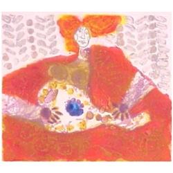 Theodore Tobiasse (b. 1927) French, WOMAN WITH GUITAR, color carborumdum gravure, signed in pen...