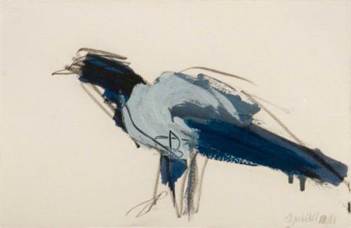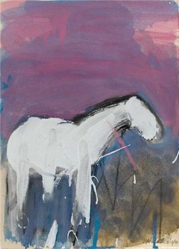 Theodore Waddell (b. 1941). Two Oils on Paper. (1) 6 1/2" x 9 1/2"."Magpie". Signed LR. (2) 14" x 10". "White Horse". Signed LR. (est $700-1,100)