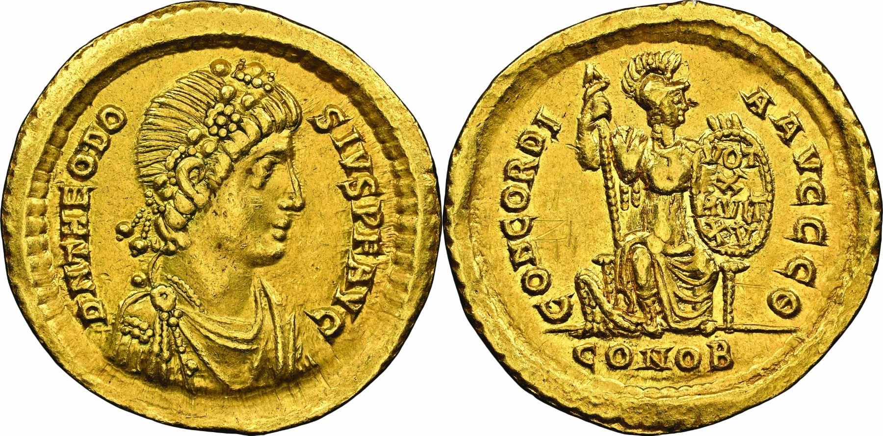 Theodosius I 379-395 Solidus, Constantinople, 10e officine, 383-388, AU 4.40 g.