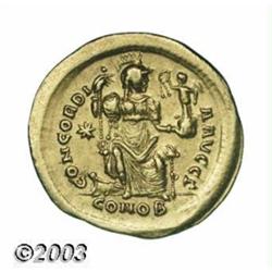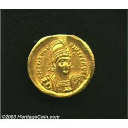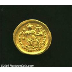 <TABLE cellSpacing=0 cellPadding=0 width="100%" bgColor=#000000 border=0><TBODY> <TR><TD width="100%"><TABLE cellSpacing=1 cellPadding=3 width="100%" border=0><TBODY><TR><TD width="100%" bgColor=#79735c><FONT face=arial color=#ffffff size=3><B>Description</B> </FONT></TD></TR><TR><TD width="100%" bgColor=#ffffff><FONT face=arial size=2><B>Theodosius II.</B></I> A.D. 408-450. AV solidus (22 mm, 4.47 g). Constantinople, A.D. 408-420. Diademed, helmeted and cuirassed three-quarter bust facing slightly right, holding spear over right shoulder and on left arm shield decorated with a horseman spearing fallen enemy / Constantinopolis enthroned facing, head right, right foot on prow, holding sceptre in right hand, Victory on a globe in left; star in left field; (Gamma)/CONOB. RIC 201; Depeyrot 73/2. VF. </FONT></TD></TR></TBODY></TABLE></TD></TR></TBODY></TABLE><BR><A name=PricesRealized></A><TABLE cellSpacing=0 cellPadding=0 width="100%" bgColor=#000000 border=0><TBODY><TR><TD width="100%"><TABLE cellSpacing=1 cellPadding=3 width="100%" border=0><TBODY><TR><TD width="100%" bgColor=#79735c><A name=PR><FONT face=arial color=#ffffff size=3><B>Previous Prices from Heritage Auctions</B> </FONT></A></TD></TR><TR><TD bgColor=#f6f6ed>No Prior Data Recorded </TD></TR><TR><TD bgColor=#ffffff><FONT face=arial size=1 ?>PLEASE NOTE: All prices realized reflect the final hammer price PLUS the buyer's premium in auctions that charge a buyer's premium. Each item has a notation at the top of the listing indicating whether that lot included a buyer's premium. Example: A item that sells with a final hammer price of $100 and a 20% buyer's premium will display with a price realized of $120. All information listed is intended to be as accurate as possible, but errors are possible. Please use this guide carefully and inform us of any inaccuracies. </FONT></TD></TR></TBODY></TABLE></TD></TR></TBODY></TABLE><BR><TABLE cellSpacing=0 cellPadding=0 width="100%" bgColor=#000000 border=0><TBODY><TR><TD width="100%"><TABLE cellSpacing=1 cellPadding=3 width="100%" border=0><TBODY><TR><TD width="100%" bgColor=#79735c colSpan=6><FONT face=arial color=#ffffff size=3><B>Price Guide*</B> </FONT></TD></TR><TR bgColor=#f6f6ed><TD align=middle><B>Grade</B> </TD><TD align=middle><B>Coin World<BR>(Trends)</B> </TD><TD align=middle><B>Numismedia<BR>Retail</B> </TD><TD align=middle><B>Numismedia<BR>Wholesale</B> </TD><TD align=middle><B>Coin<BR>Universe</B> </TD><TD align=middle><B>Heritage<BR>Value Index</B> </TD></TR><TR bgColor=#ffffff><TD colSpan=6><FONT size=1>*All information listed is intended to be as accurate as possible, but errors are possible. No item may be returned or refused based on this information which is provided as a service to our customers. You should contact each pricing source directly to determine the accuracy of this information. </FONT></TD></TR></TBODY></TABLE></TD></TR></TBODY></TABLE><BR><TABLE cellSpacing=0 cellPadding=0 width="100%" bgColor=#000000 border=0><TBODY><TR><TD width="100%"><TABLE cellSpacing=1 cellPadding=3 width="100%" border=0><TBODY><TR><TD width="100%" bgColor=#79735c><FONT face=arial color=#ffffff size=3><B>Population Guide</B> </FONT></TD></TR><TR bgColor=#ffffff>< Important notice: Heritage usually auctions material at the rate of 200-250 lots per hour. On some occasions eBay Live bid software or the Internet may not be able to keep up with the pace of the auction. We recommend placing a realistic absentee bid now as insurance to avoid disappointment. Occasionally the auctioneer may eliminate or reject an eBay Live bid, and the auctioneer may also reopen a lot after the close of the eBay live bidding (usually because we missed an audience bid), and may reject your bid even if it shows you as the winning bidder. By bidding via eBay Live, you agree that Heritage may award the lot to another bidder at its sole discretion under the circumstances described above or any other reasonable circumstances. Also please note that all Heritage lots purchased through eBay Live carry a 20% Buyer's Premium. Please make sure you read the Terms and Conditions before you bid.</TD></TR></TBODY></TABLE></TD></TR></TBODY></TABLE>