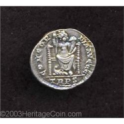 <TABLE cellSpacing=0 cellPadding=0 width="100%" bgColor=#000000 border=0><TBODY> <TR><TD width="100%"><TABLE cellSpacing=1 cellPadding=3 width="100%" border=0><TBODY><TR><TD width="100%" bgColor=#79735c><FONT face=arial color=#ffffff size=3><B>Description</B> </FONT></TD></TR><TR><TD width="100%" bgColor=#ffffff><FONT face=arial size=2><B>Theodosius I.</B></I> A.D. 379-395. AR siliqua (17 mm, 1.89 g). Trier, A.D. 378-388. Diademed, draped and cuirassed bust right / Constantinopolis seated facing, head right, holding sceptre in right hand, cornucopiae in left, right foot on prow. RIC 55a, 83a; RSC 4a. Toned XF. </FONT></TD></TR></TBODY></TABLE></TD></TR></TBODY></TABLE><BR><A name=PricesRealized></A><TABLE cellSpacing=0 cellPadding=0 width="100%" bgColor=#000000 border=0><TBODY><TR><TD width="100%"><TABLE cellSpacing=1 cellPadding=3 width="100%" border=0><TBODY><TR><TD width="100%" bgColor=#79735c><A name=PR><FONT face=arial color=#ffffff size=3><B>Previous Prices from Heritage Auctions</B> </FONT></A></TD></TR><TR><TD bgColor=#f6f6ed>No Prior Data Recorded </TD></TR><TR><TD bgColor=#ffffff><FONT face=arial size=1 ?>PLEASE NOTE: All prices realized reflect the final hammer price PLUS the buyer's premium in auctions that charge a buyer's premium. Each item has a notation at the top of the listing indicating whether that lot included a buyer's premium. Example: A item that sells with a final hammer price of $100 and a 20% buyer's premium will display with a price realized of $120. All information listed is intended to be as accurate as possible, but errors are possible. Please use this guide carefully and inform us of any inaccuracies. </FONT></TD></TR></TBODY></TABLE></TD></TR></TBODY></TABLE><BR><TABLE cellSpacing=0 cellPadding=0 width="100%" bgColor=#000000 border=0><TBODY><TR><TD width="100%"><TABLE cellSpacing=1 cellPadding=3 width="100%" border=0><TBODY><TR><TD width="100%" bgColor=#79735c colSpan=6><FONT face=arial color=#ffffff size=3><B>Price Guide*</B> </FONT></TD></TR><TR bgColor=#f6f6ed><TD align=middle><B>Grade</B> </TD><TD align=middle><B>Coin World<BR>(Trends)</B> </TD><TD align=middle><B>Numismedia<BR>Retail</B> </TD><TD align=middle><B>Numismedia<BR>Wholesale</B> </TD><TD align=middle><B>Coin<BR>Universe</B> </TD><TD align=middle><B>Heritage<BR>Value Index</B> </TD></TR><TR bgColor=#ffffff><TD colSpan=6><FONT size=1>*All information listed is intended to be as accurate as possible, but errors are possible. No item may be returned or refused based on this information which is provided as a service to our customers. You should contact each pricing source directly to determine the accuracy of this information. </FONT></TD></TR></TBODY></TABLE></TD></TR></TBODY></TABLE><BR><TABLE cellSpacing=0 cellPadding=0 width="100%" bgColor=#000000 border=0><TBODY><TR><TD width="100%"><TABLE cellSpacing=1 cellPadding=3 width="100%" border=0><TBODY><TR><TD width="100%" bgColor=#79735c><FONT face=arial color=#ffffff size=3><B>Population Guide</B> </FONT></TD></TR><TR bgColor=#ffffff> Important notice: Heritage usually auctions material at the rate of 200-250 lots per hour. On some occasions eBay Live bid software or the Internet may not be able to keep up with the pace of the auction. We recommend placing a realistic absentee bid now as insurance to avoid disappointment. Occasionally the auctioneer may eliminate or reject an eBay Live bid, and the auctioneer may also reopen a lot after the close of the eBay live bidding (usually because we missed an audience bid), and may reject your bid even if it shows you as the winning bidder. By bidding via eBay Live, you agree that Heritage may award the lot to another bidder at its sole discretion under the circumstances described above or any other reasonable circumstances. Also please note that all Heritage lots purchased through eBay Live carry a 20% Buyer's Premium. Please make sure you read the Terms and Conditions before you bid.</TD></TR></TBODY></TABLE></TD></TR></TBODY></TABLE>