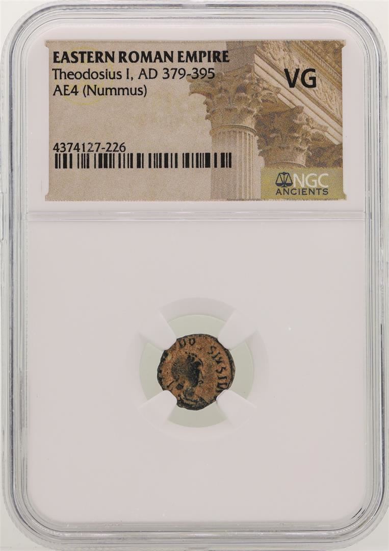 One Theodosius l 379-395 AD Ancient Eastern Roman Empire NGC VG. NGC Certified.