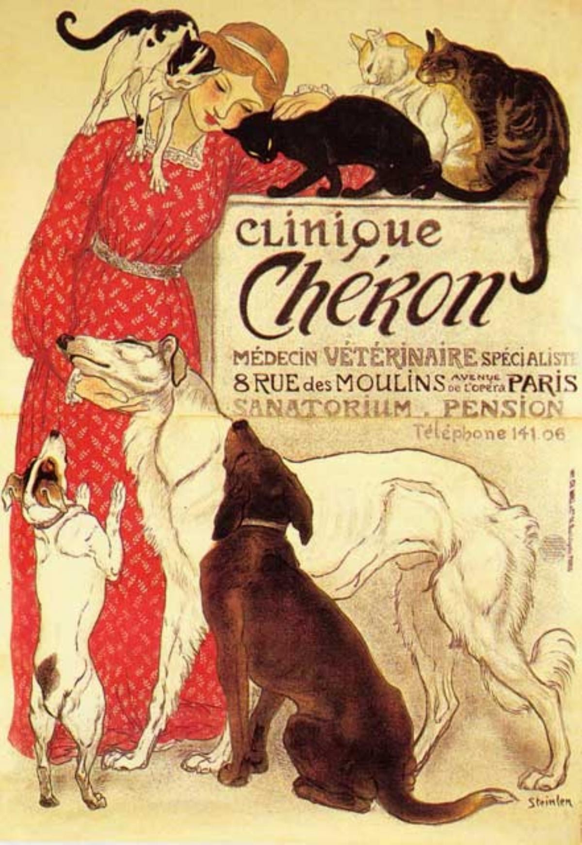 Artist: Théophile Alexandre Steinlen - Title: Clinique Cheron - Medium: Fine Art Reproduction Giclee on Canvas - Image Size: Approximately 32 inches x 22 inches - Unframed on Unstretched Canvas - French illustrator, printmaker, painter and sculptor, of Swiss birth.