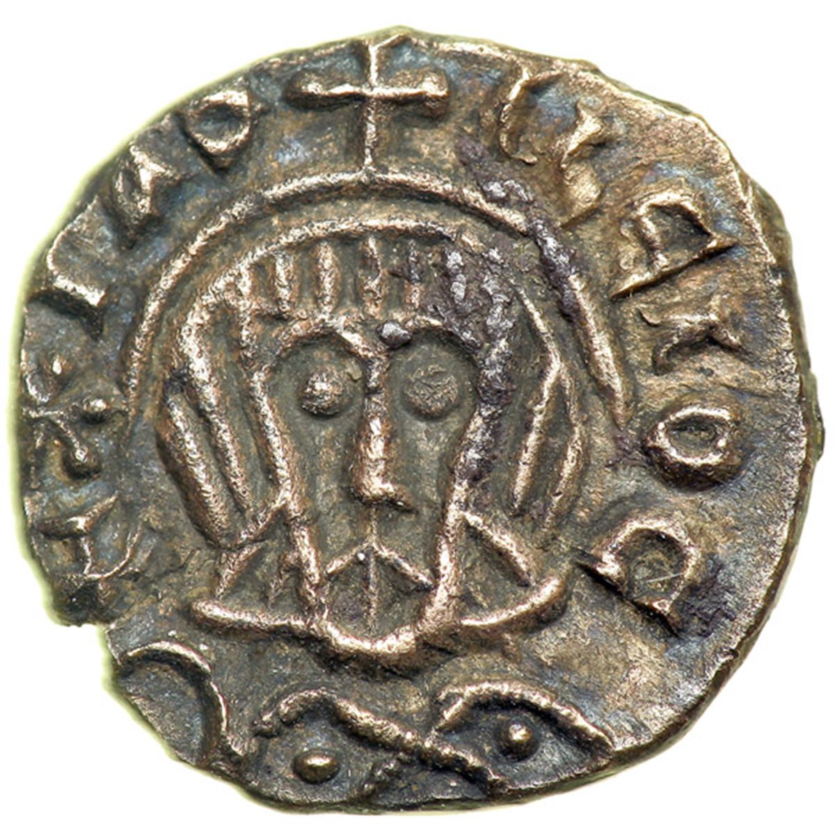 Theophilus, 829-842. Electrum Tremissis (1.17 g) minted at Syracuse in Sicily. Facing bust of Theophilus holding globus cruciger. Reverse: Facing bust (of Constantine?). Cf. D.O. 27; S. 1678. Small flan as usual. Extremely Fine.