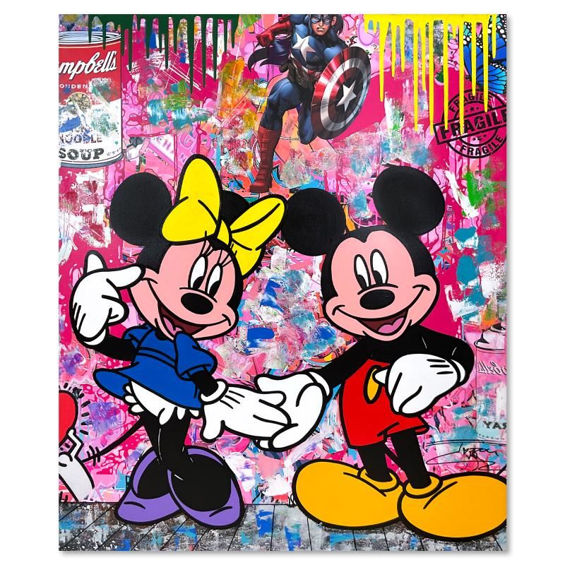 "Ther New Friend" is a unique mixed media acrylic on gallery wrapped canvas by Jozza. Hand Signed by the artist and titled in verso, the piece comes with a letter of authenticity. Measures approximately 48" x 40" (image).
