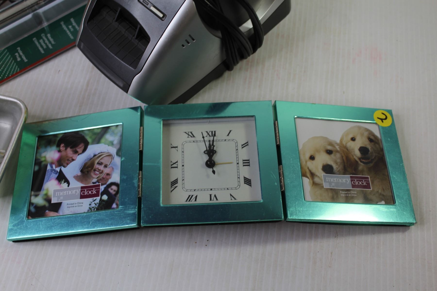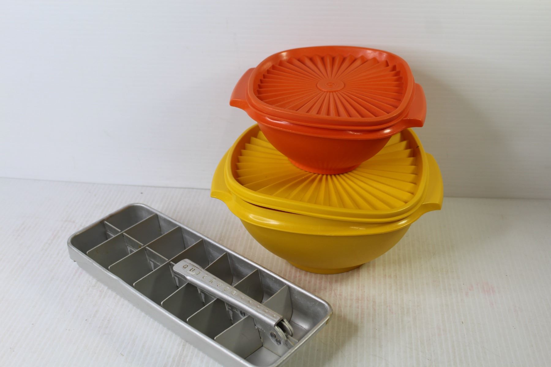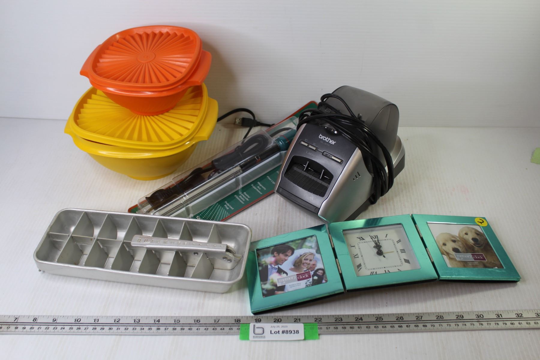 Therma Tech Submersible Heater - Tupperware Bowls w/Lids - Clock Photo Holder - Label Printer (untested) - Ice cube Tray