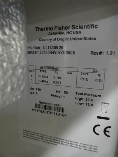 Thermo Scientific Revco Lab Freezer - 230 v - 1 Ph - ULT430V20