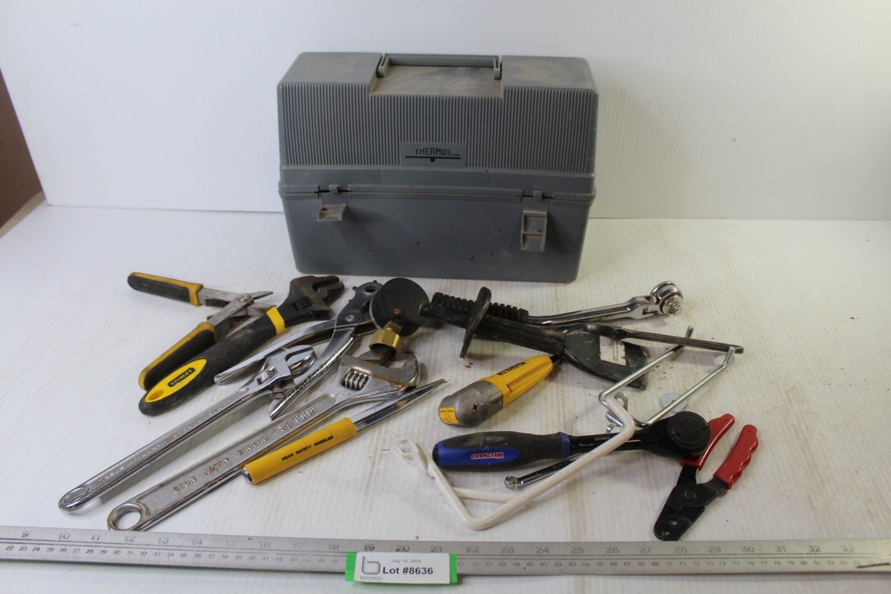 Thermos Lunch Box - Assorted Hand Tools - Angle Driver Attachment - Crescent Wrenches