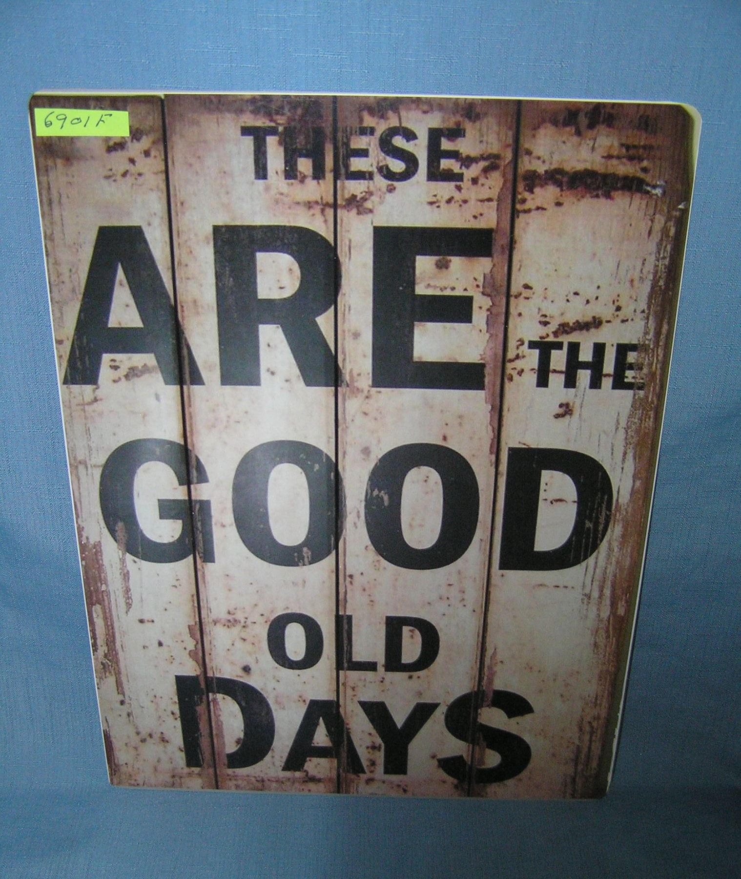 These are the good old days  retro style advertising sign printed on PVC hardboard these signs are auctioned for their decorative and display purposes 12 inches by 16 inches est. value $50.00-$60.00