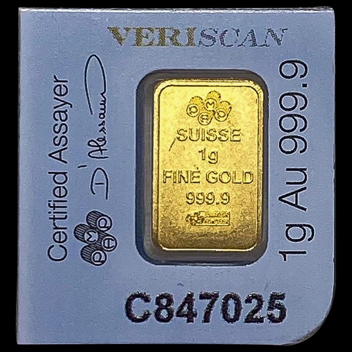 These images show a PAMP Suisse 1g Gold UNCIRCULATED