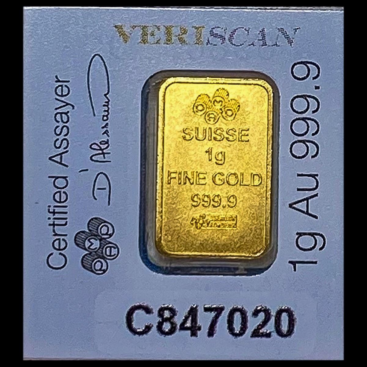 These images show a PAMP Suisse 1g Gold UNCIRCULATED