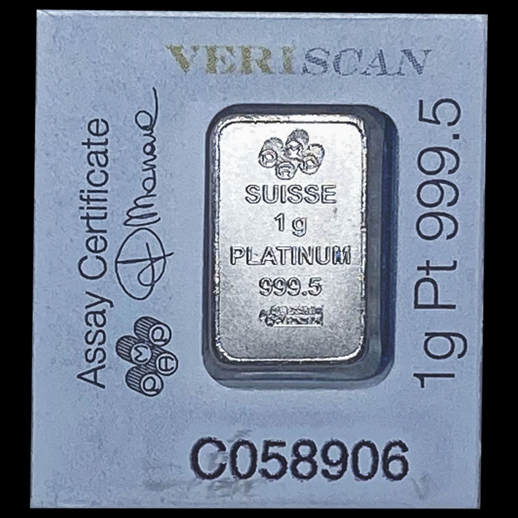 These images show a PAMP Suisse 1g Plati UNCIRCULATED
