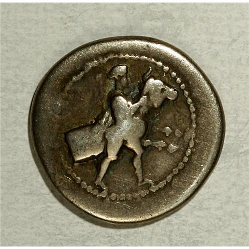 <B>Thessaly, Trikka.</B></I> Ca. 480-400 B.C. AR hemidrachm (16 mm, 2.71 g). Youth restraining forepart of a bull right / Forepart of a horse right. SNG Copenhagen 262 var. (legend position).<BR><BR><b>Shipping:</b> Coin/Currency (<a target="_blank" href="http://www.heritageauctions.com/common/shipping.php">view shipping information</a>)