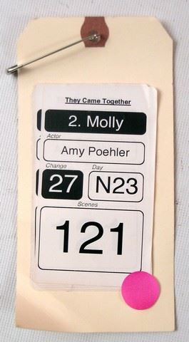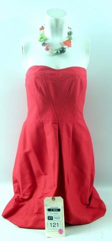Molly (Amy Poehler) screen worn, hero, red ribbed strapless with sweetheart neckline, full skirt and pockets 'Shoshanna' dress, and large beaded necklace. Includes wardrobe tag!
