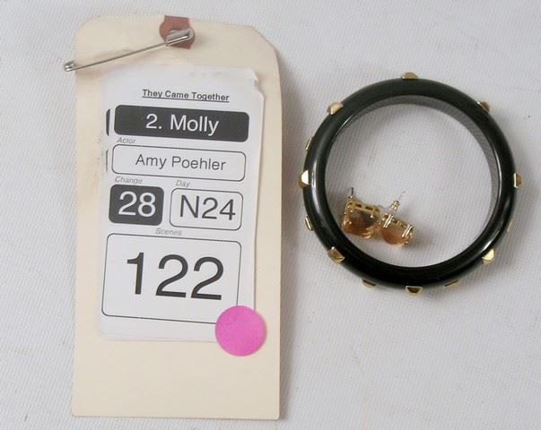 Molly (Amy Poehler) screen worn, hero, black sequins short sleeve 'Michael Kors' dress, (size S) black with studs bracelet, earrings, and black suede 'Steve Madden' pumps. (size 8) Includes wardrobe tag!