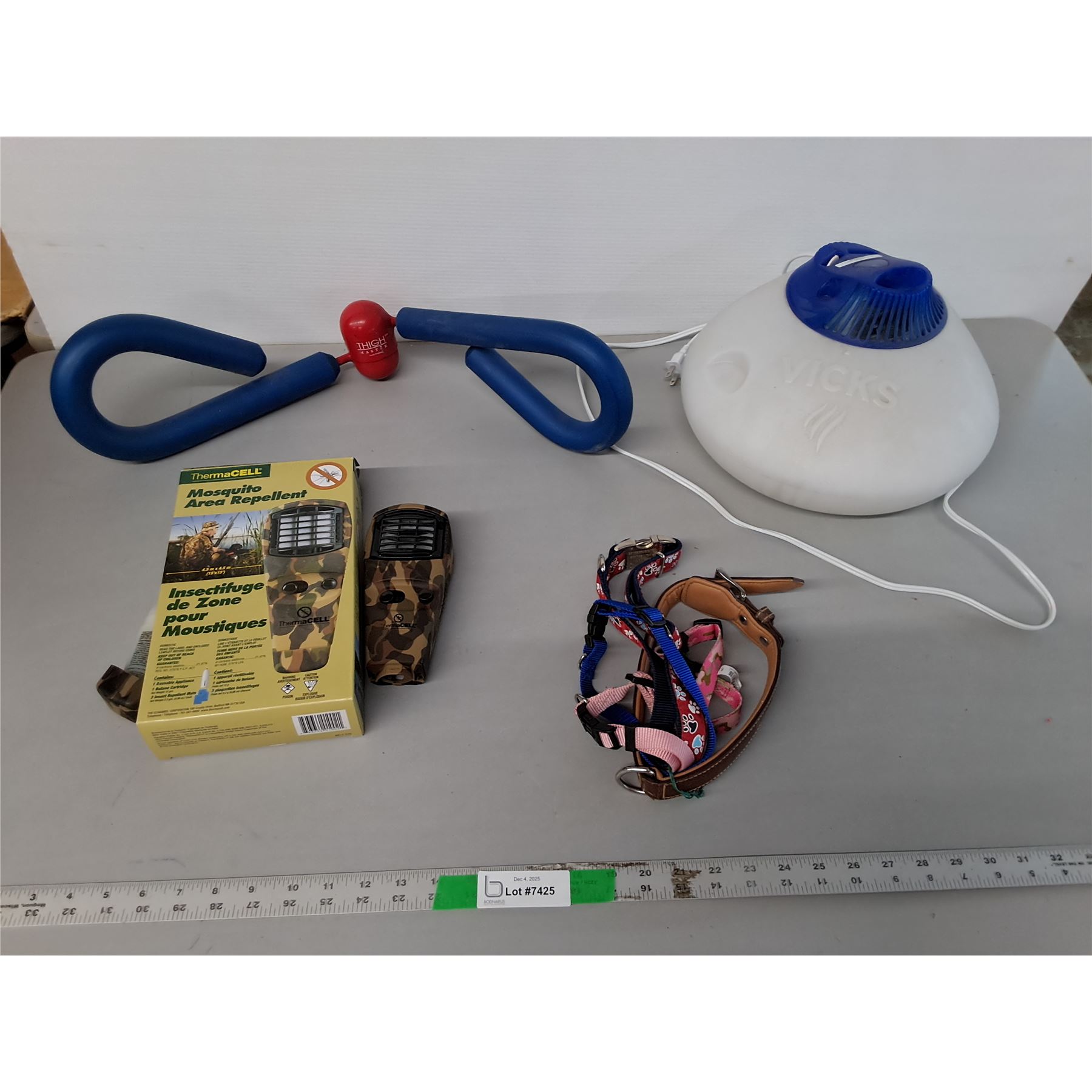 Thigh Master, Vick's Humidifier- Powers On, Moquito Area Repellant, Dog Collars- Cannot Ship