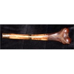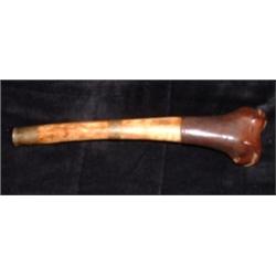 Thighbone trumpet, bone and leather, 19th century, 12" long