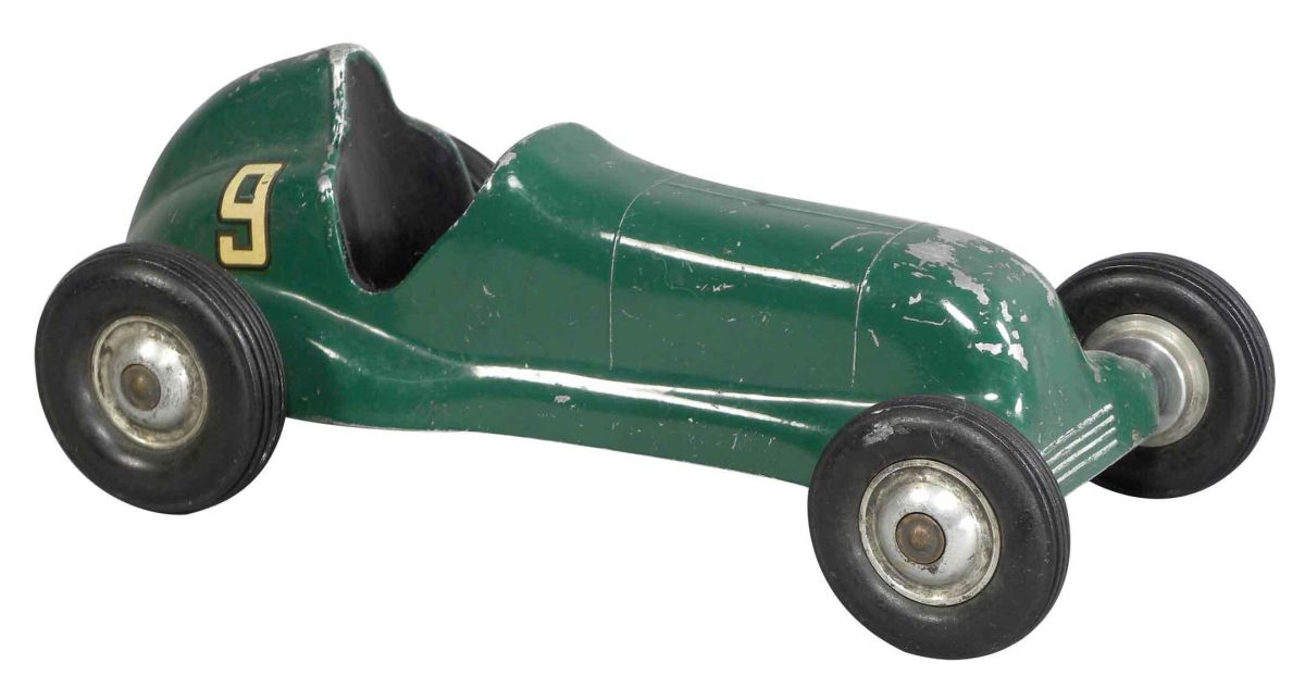 Thimble Drome Special Aluminum Midget Race Toy Car. L.M. Cox Mfg. Co. Santa Ana, CA. Some paint wear on high spots otherwise good condition. 8 3/4 inches.