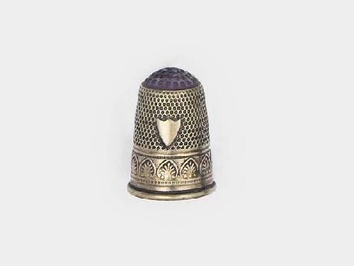 Silver, 5 gr. Pressed decoration on the surface, amethyst decoration. Marked: Austrian import mark between 1867 and 1902. Size: 2.5 cm