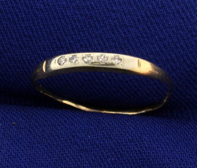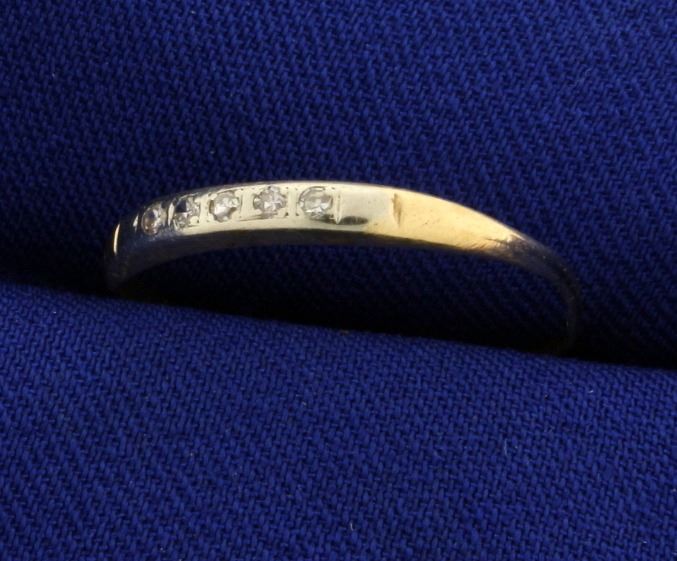 In 14k yellow and white gold, containing five .01ct diamonds. Size 8 1/2. 0.8g.