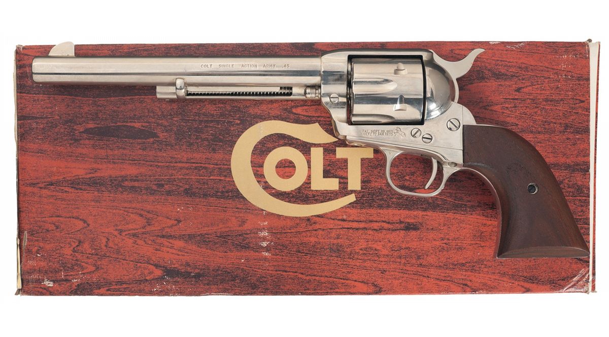 Manufactured in 1979. This revolver has a fixed front sight and a frame notch rear sight. Fitted with smooth walnut grips. With box numbered to gun.