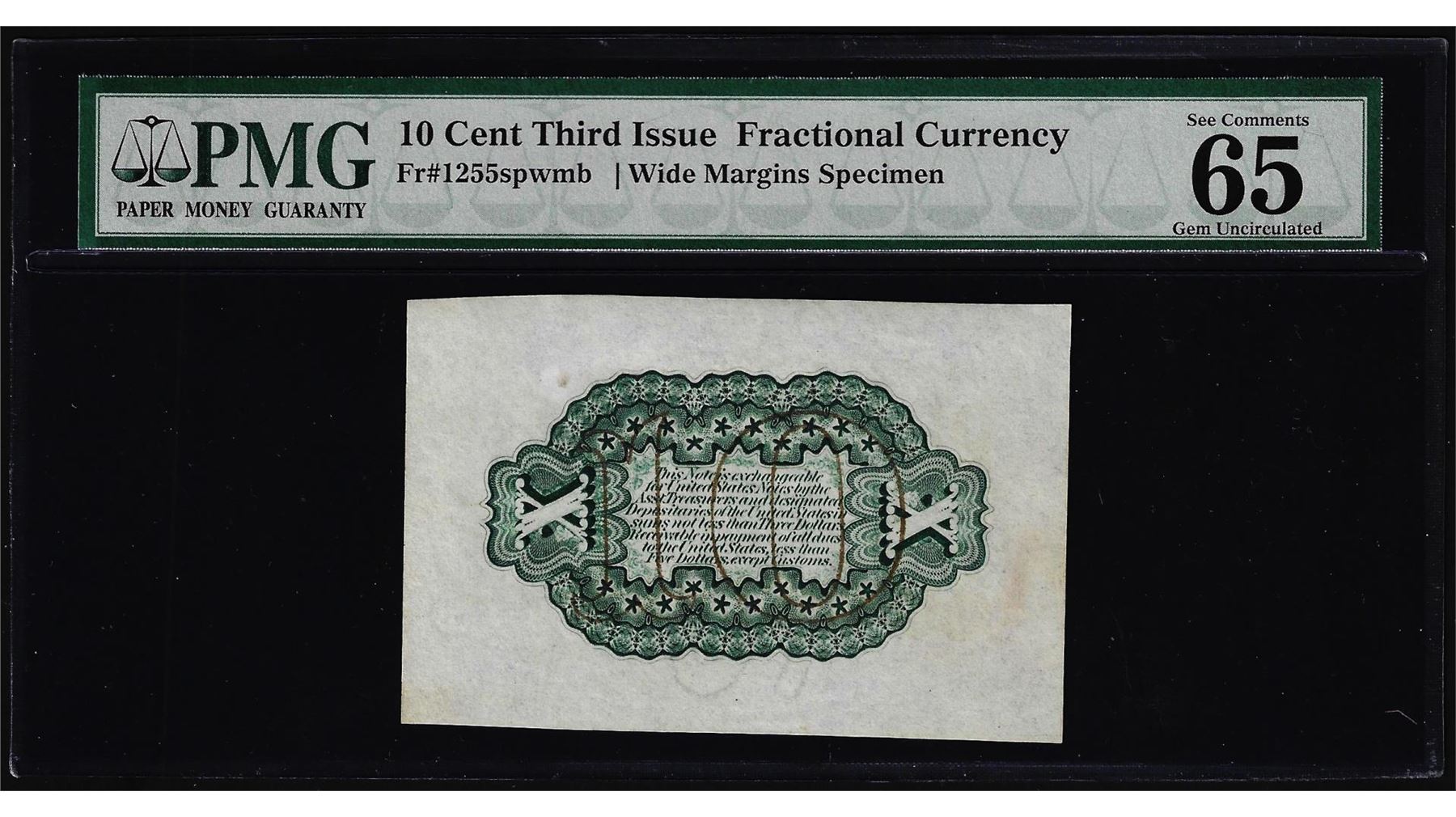 Third Issue 10 Cents Specimen Fractional Note Fr.1255sp PMG Gem Uncirculated 65EPQ
