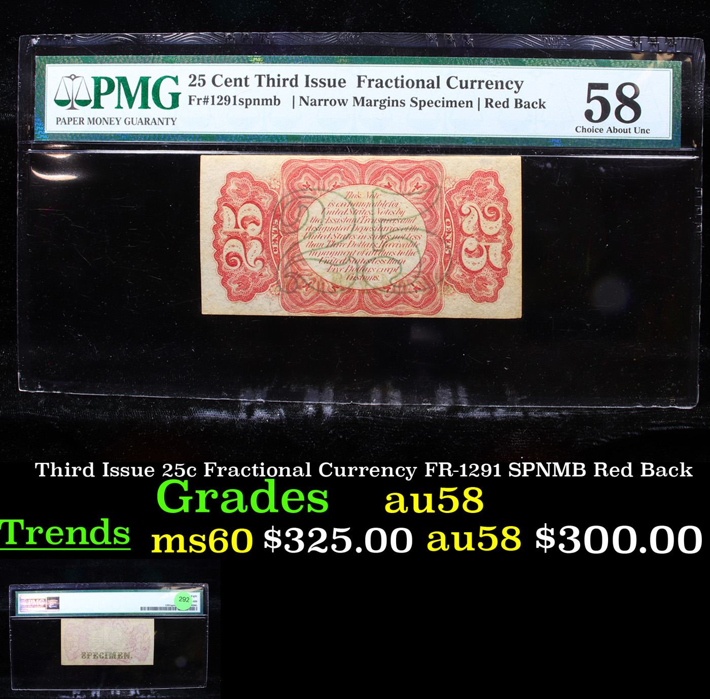 Third Issue 25c Fractional Currency FR-1291 SPNMB Red Back au58 By PMG.
