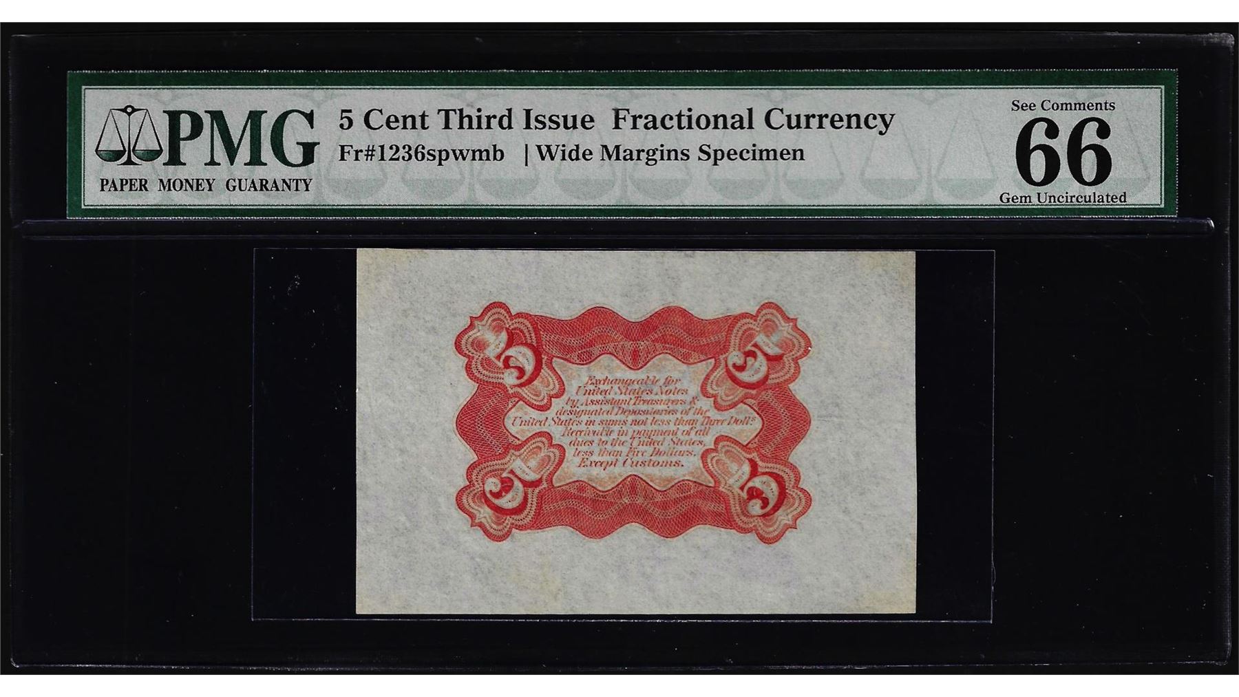 Third Issue Five Cents Specimen Fractional Note Fr.1236sp PMG Gem Uncirculated 66EPQ