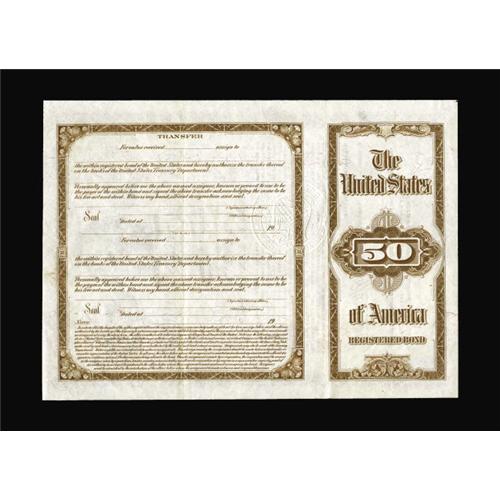 <B>Third Liberty Loan 4 1/4% Gold Bond of 1928.</B></I> $50 May 9, 1918<BR>A Liberty Loan for the common man as the small denomination will attest to. A large embossed Treasury Seal is noticed on this <B>Extremely Fine</B></I> bond.