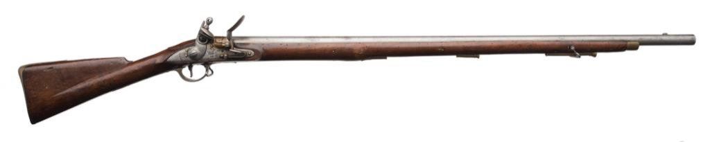 Third Model Brown Bess flintlock rifle, .75 caliber, 39” barrel, GR over Crown and Tower markings on lock plate; full stock, brass mountings, missing ramrod. This classic English flintlock is in overall exceptional condition for its age with sharp markings, strong action and good stock with scattered small old worm holes. Est.: $1,250-$2,500.