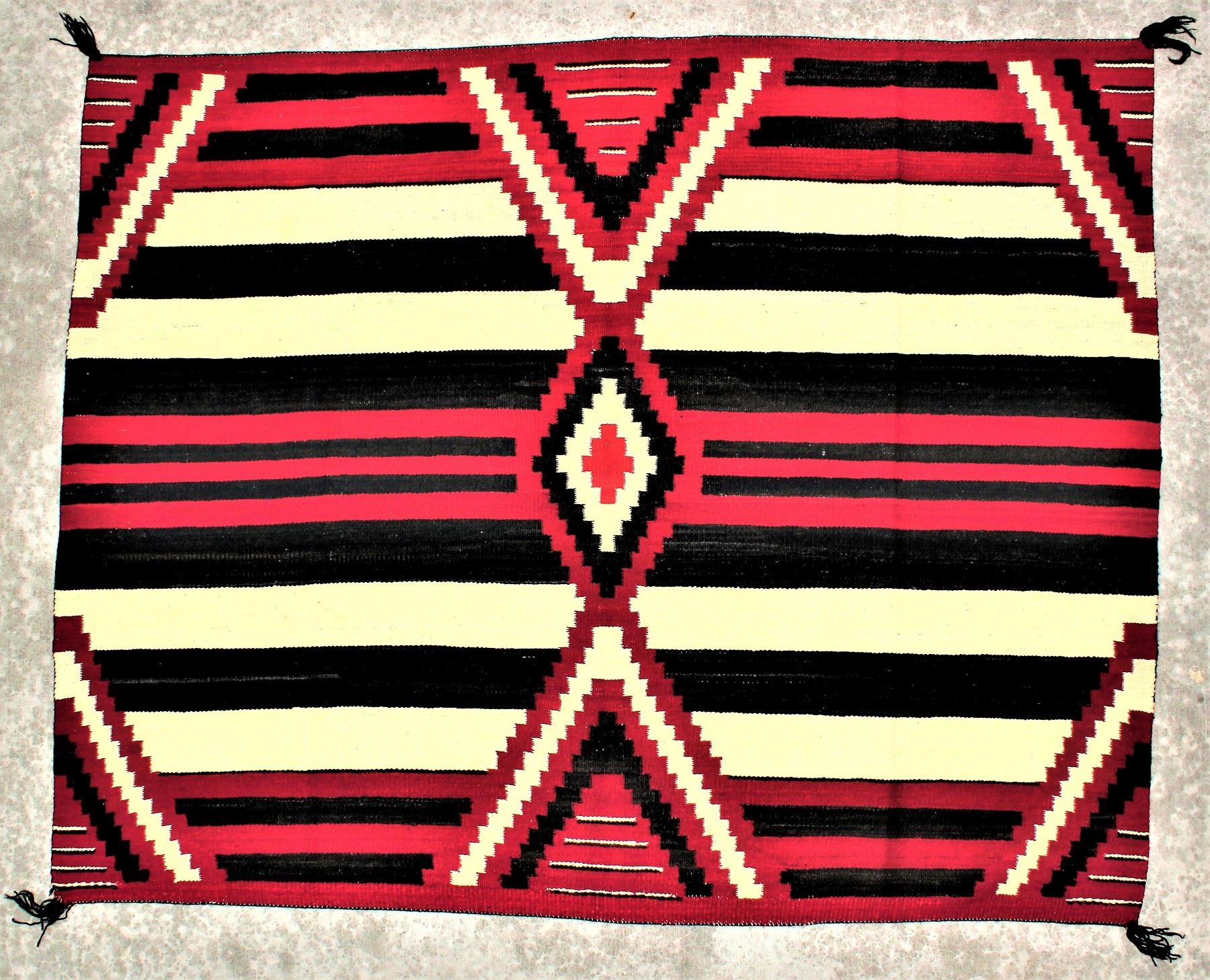 1900-1920's boldly colored Chief's weaving with great eye appeal and condition. Measurements 52"x 65".