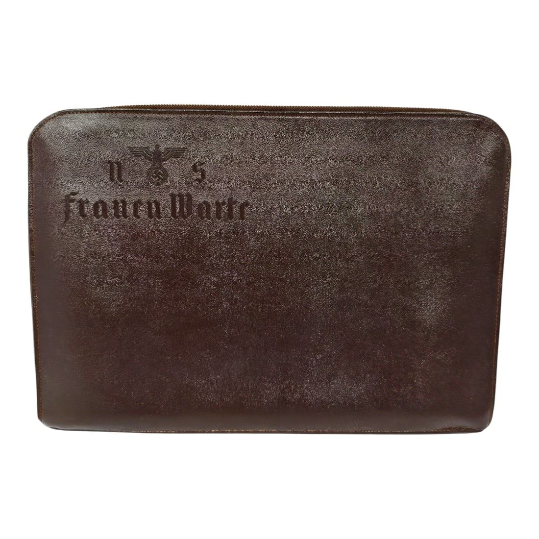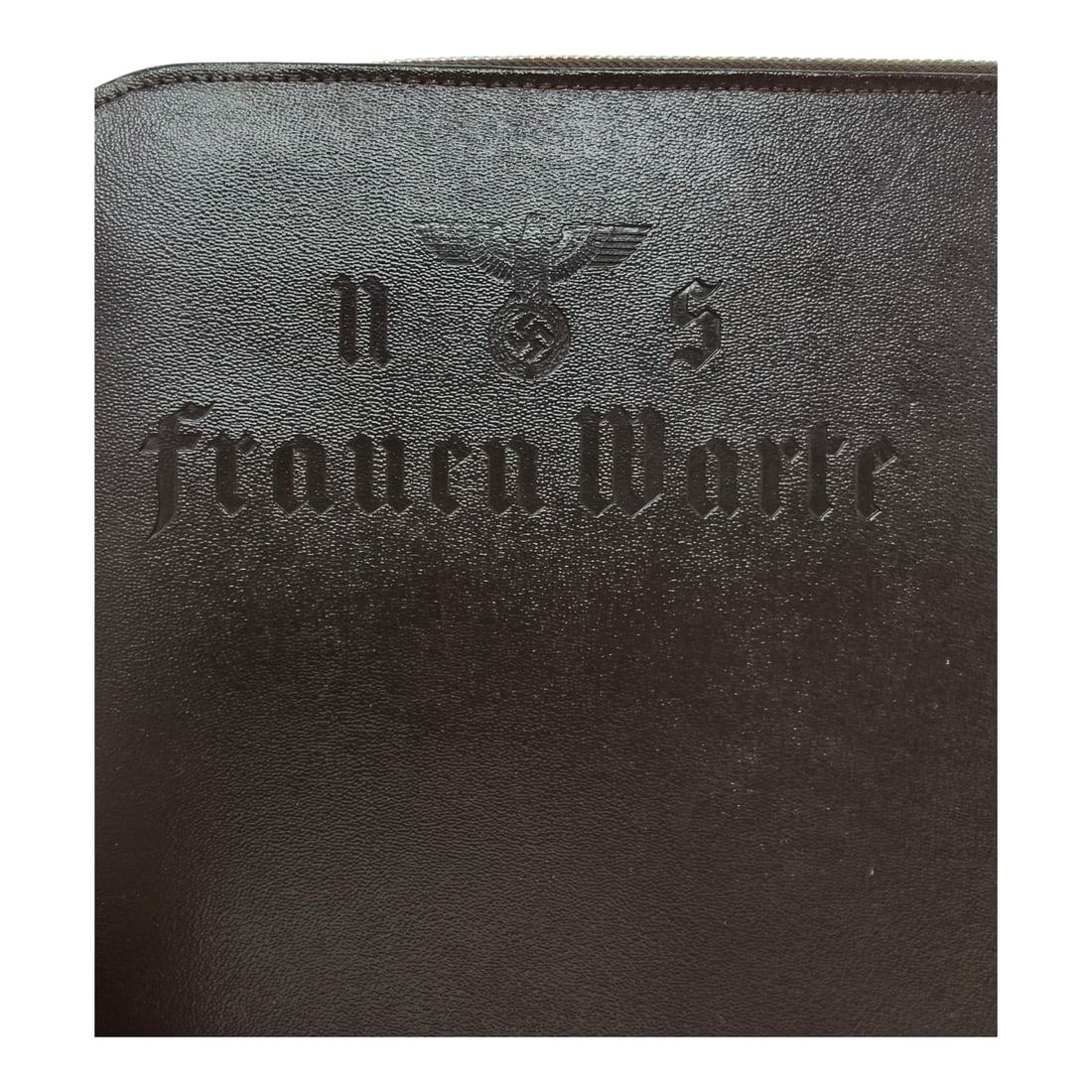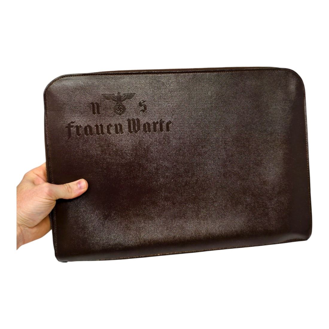 This is an authentic or period-style document case related to the NS-Frauenwarte, the official women’s magazine of the Nazi Party and a publication arm of the National Socialist Women’s League (NS-Frauenschaft). It was probably for an employee of the magazine.“NS-Frauenwarte” (National Socialist Women’s Outlook) was the official Nazi Party women’s magazine, published from 1932 to 1945. It was overseen by the NS-Frauenschaft, the women’s branch of the NSDAP, and served as a major propaganda outlet aimed at shaping women’s roles in Nazi Germany.Its contents included:Articles on motherhood, household management, and family lifePropaganda pieces promoting Nazi gender ideology — the “three Ks”: Kinder, Küche, Kirche (children, kitchen, church)Features on women’s contributions to the war effort and the idealized Aryan familyPolitical essays aligning domesticity and motherhood with national dutyBy 1939, NS-Frauenwarte was the only magazine legally permitted for women in Nazi Germany, with a massive circulation across the Reich and occupied territories.This leather case would likely have been issued to:Editorial staff or regional correspondents of the magazineRepresentatives of the NS-Frauenschaft attending conferences or eventsAdministrative personnel involved in propaganda distribution
