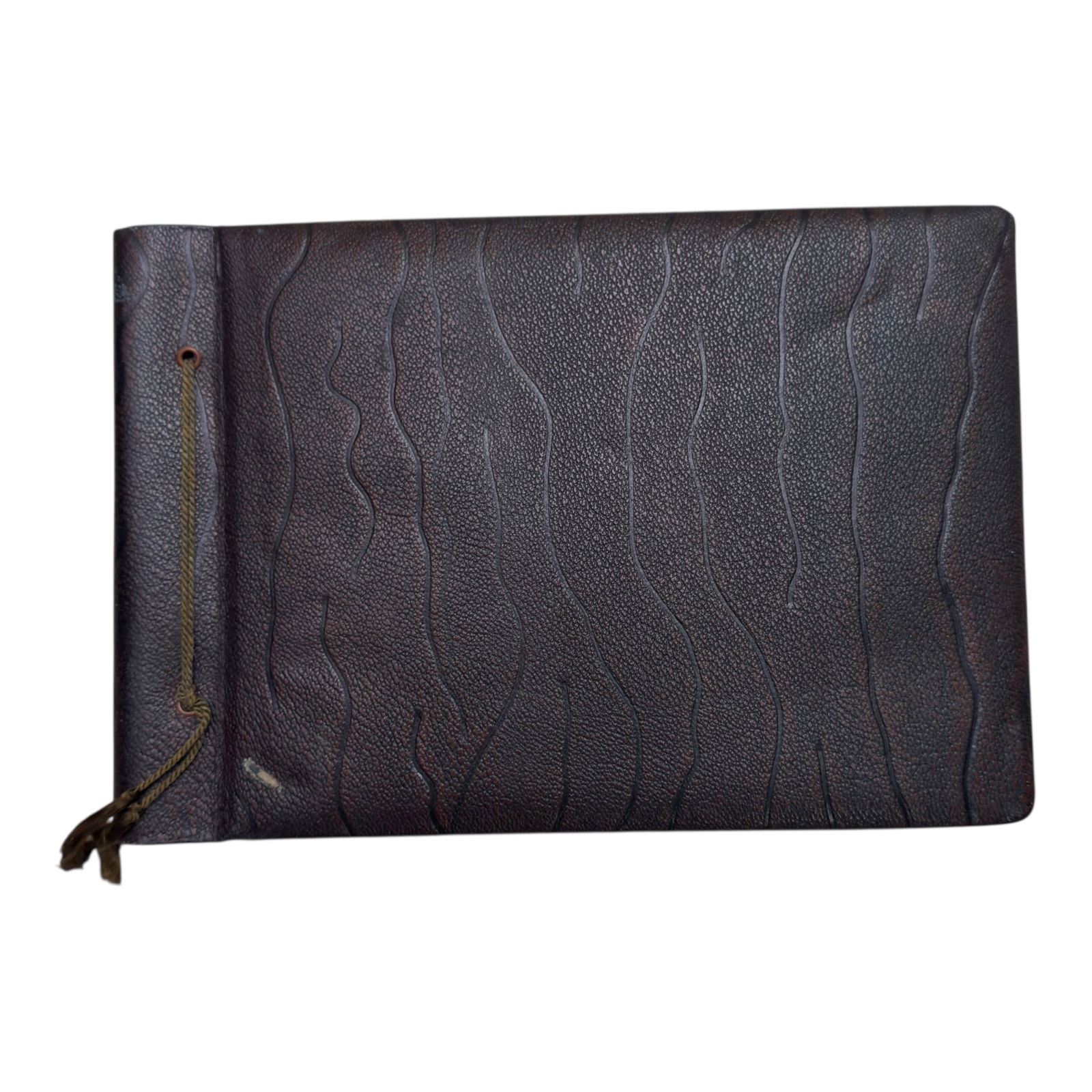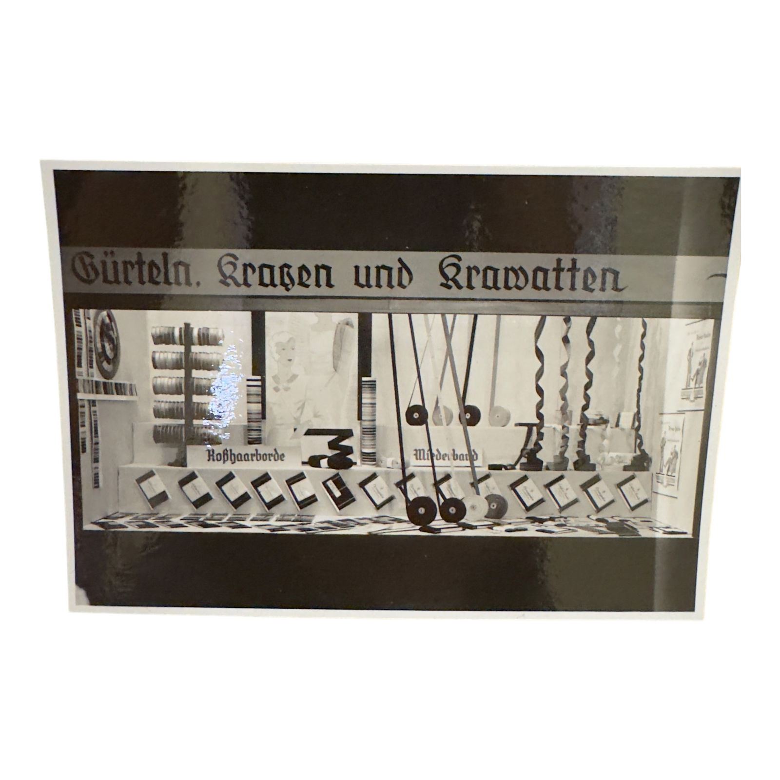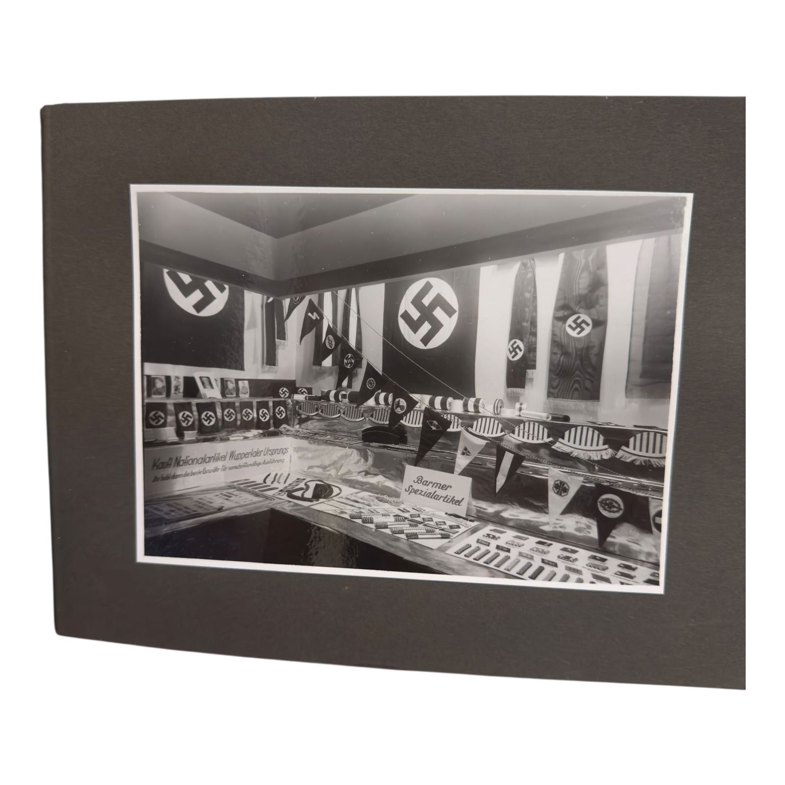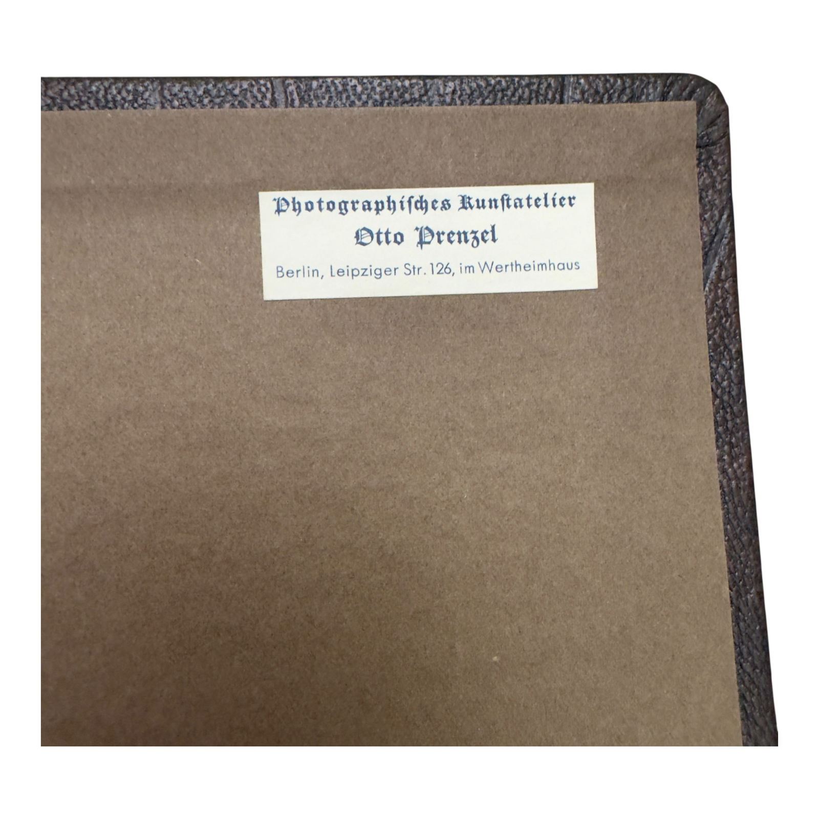 Third Reich Nazi Photo Presentation Album from Shop with personal letter from the shop owner. The handwritten letter on the letterhead of the:Wirtschaftsverband der Bänder, Kordel-, Litzen- u. Klöppelspitzen-Industrie(= Economic Association of the Ribbon, Cord, Braid, and Bobbin Lace Industry) The letter roughly translates to:Dear Rudolph,Along with this, we are sending you a small gift as thanks for your recent lecture. We are counting on and hoping that we can establish a solid, lasting connection through a sponsor.How are you recovering from our old times? Should I send you the 2 [items/photos] made together with me? Please handle them as you see fit.All the best again — 2 photos will soon reach you as news about it in Barmen.In the meantime, greetings also from your [lady/friend].With Hitler greeting