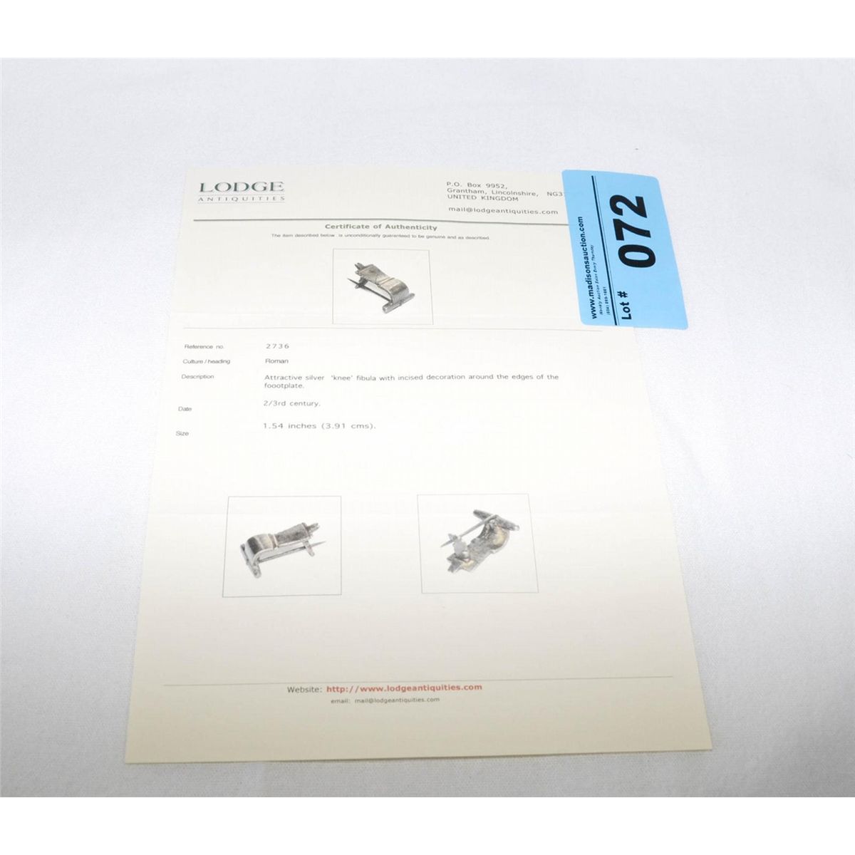 Third century roman silver fibula/ cloak pin