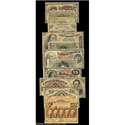<TABLE cellSpacing=0 cellPadding=0 width="100%" bgColor=#000000 border=0><TBODY> <TR><TD width="100%"><TABLE cellSpacing=1 cellPadding=3 width="100%" border=0><TBODY><TR><TD width="100%" bgColor=#79735c><FONT face=arial color=#ffffff size=3><B>Description</B> </FONT></TD></TR><TR><TD width="100%" bgColor=#ffffff><FONT face=arial size=2><B>Thirteen different types.</B></I> Mostly solid <B>Fine</B></I>s and a good mixture of types. Three of the notes, including a Lincoln with a corner off, are damaged. No returns on this lot for any reason. (175--up) (13 notes) </FONT></TD></TR></TBODY></TABLE></TD></TR></TBODY></TABLE><BR><TABLE cellSpacing=0 cellPadding=0 width="100%" bgColor=#000000 border=0><TBODY><TR> 13 notes Important notice: Heritage usually auctions material at the rate of 200-250 lots per hour. On some occasions eBay Live bid software or the Internet may not be able to keep up with the pace of the auction. We recommend placing a realistic absentee bid now as insurance to avoid disappointment. Occasionally the auctioneer may eliminate or reject an eBay Live bid, and the auctioneer may also reopen a lot after the close of the eBay live bidding (usually because we missed an audience bid), and may reject your bid even if it shows you as the winning bidder. By bidding via eBay Live, you agree that Heritage may award the lot to another bidder at its sole discretion under the circumstances described above or any other reasonable circumstances. Also please note that all Heritage lots purchased through eBay Live carry a 20% Buyer's Premium. Please make sure you read the Terms and Conditions before you bid.</TR></TBODY></TABLE>