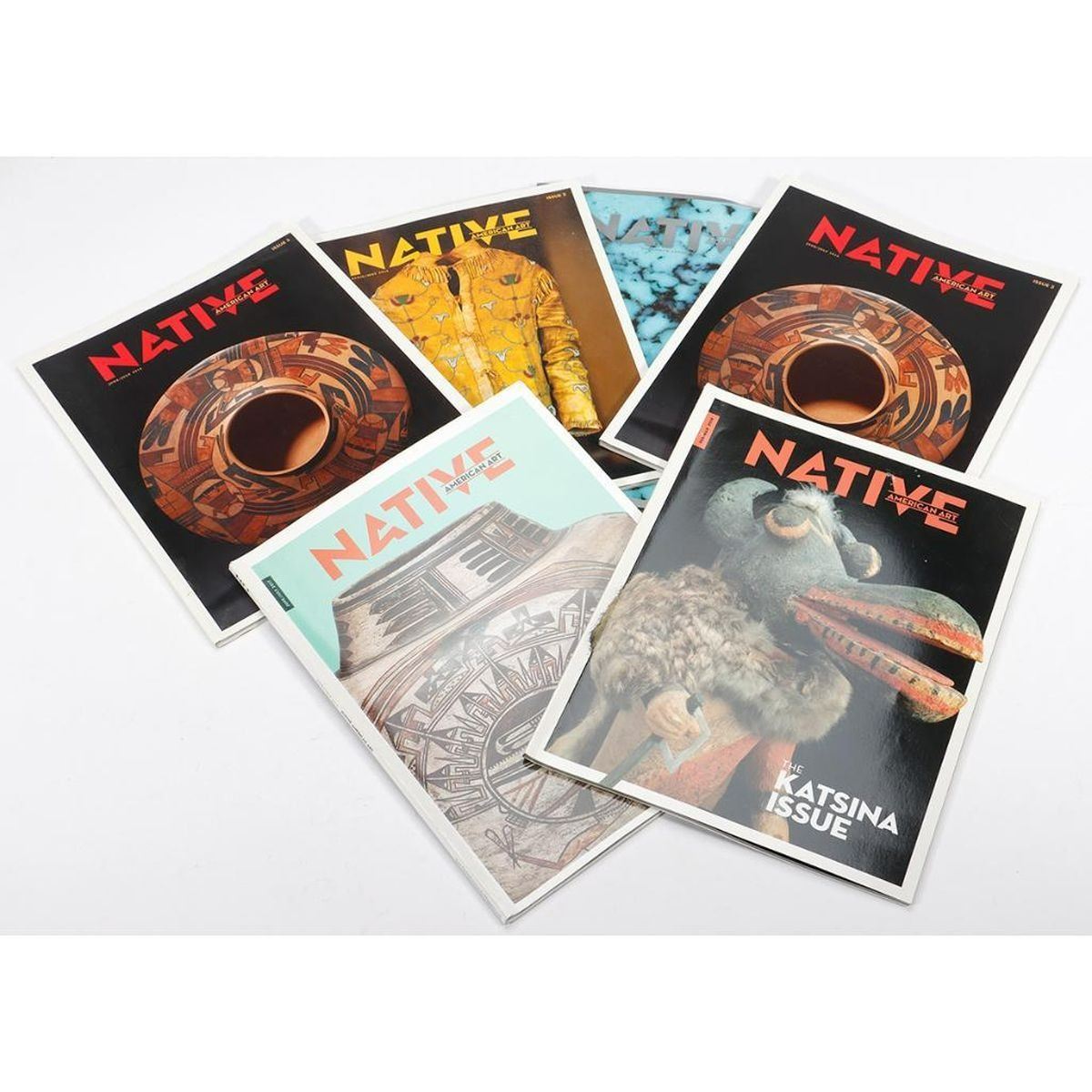 Thirteen issues of Native American Art magazine. 2017: Issues 6, 9, 11. 2018: Issues 2 (two copies), 3 (two copies), 12, 13, 14, 15, 17. 2020: Issue 25/62nd Annual Heard Museum Guild Indian Fair & Market Official Guide. Condition: Good-Very Good; these volumes are from a well-used research library.