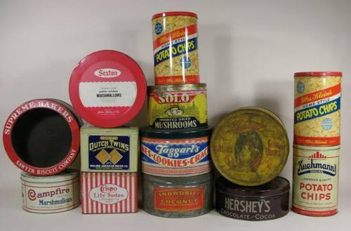 Thirteen miscellaneous store tins incl. Taggart's Cakes-Cookies-Crackers, various condition.
