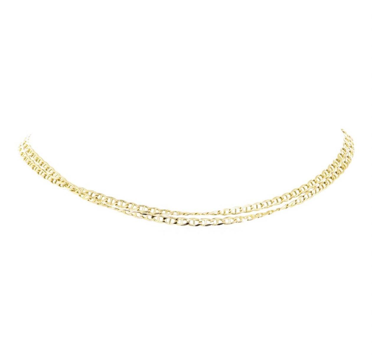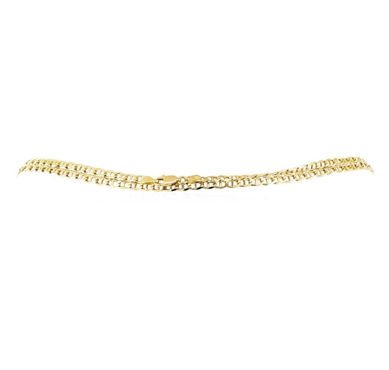 One anchor link chain measuring thirty inches in length and 3.2mm wide featuring: 14KT yellow gold weighing 12.7 grams.