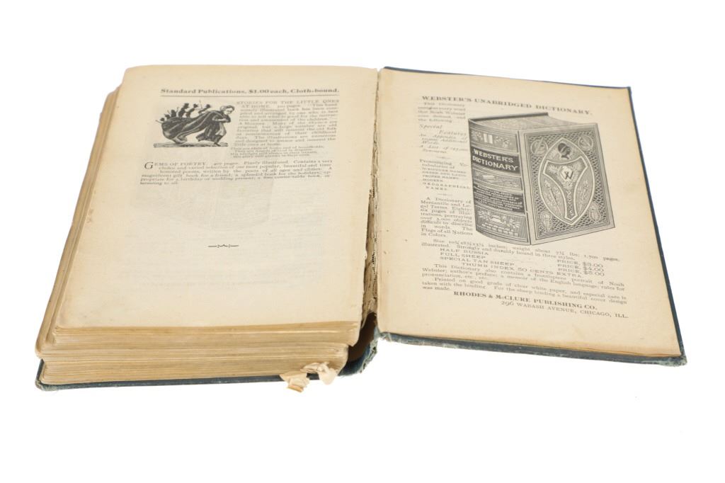 The condition is fair to good, with a few pages torn at their bottom corners, foxing on most pages, the cover is worn, pages are detached from spline. Measures 8"H x 5.5"W x 1.25"D