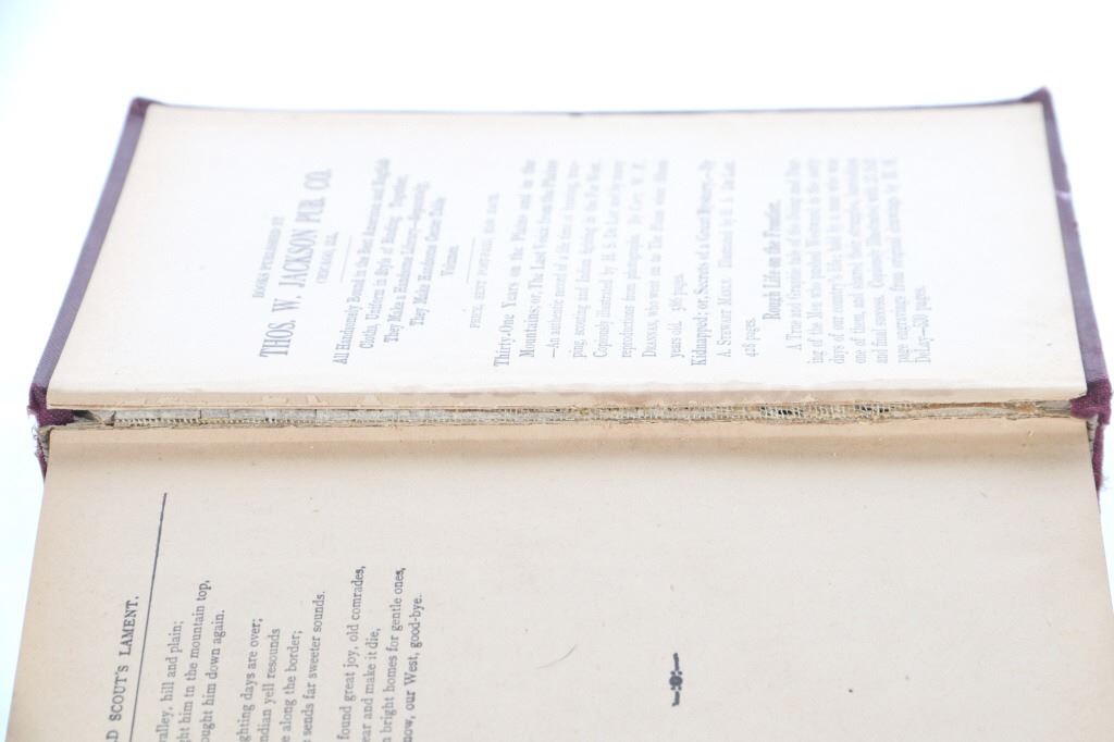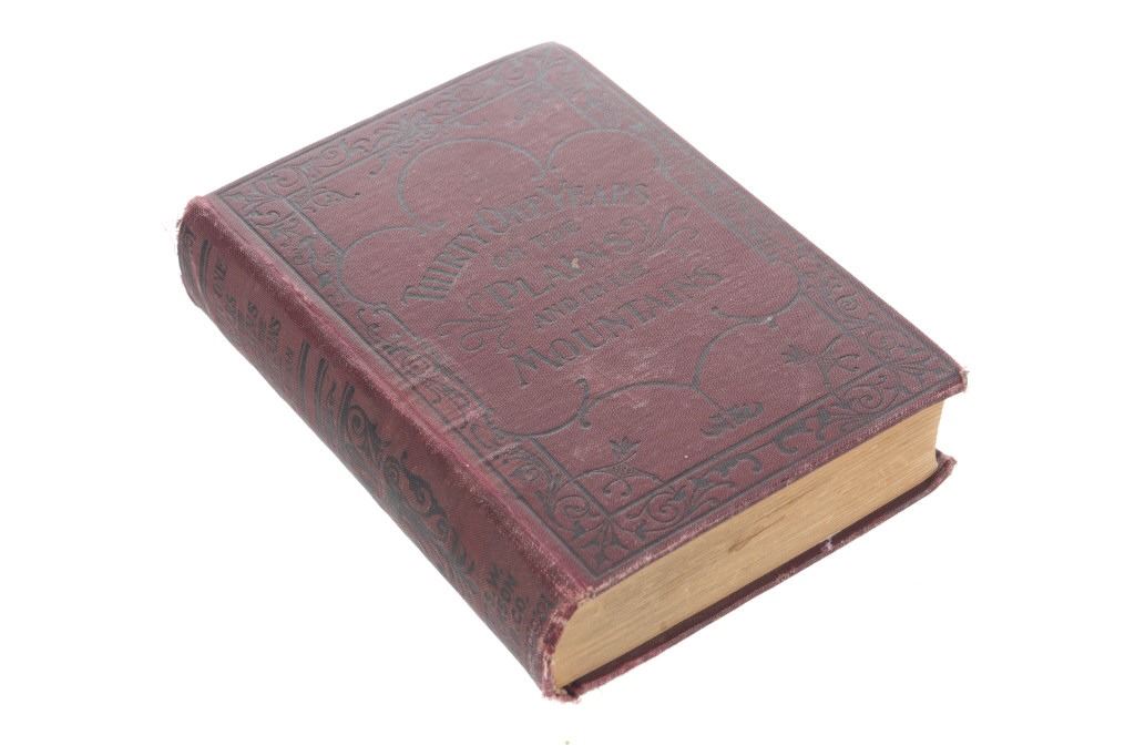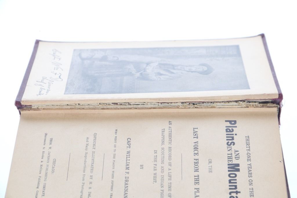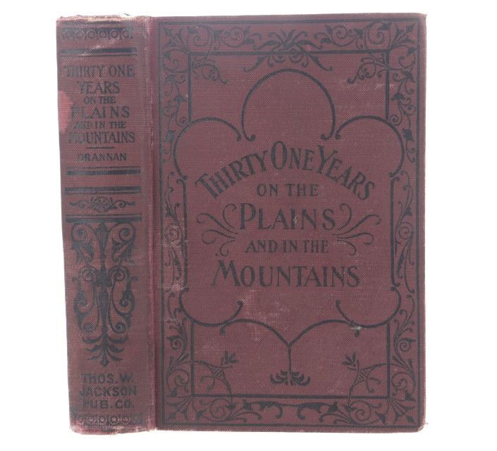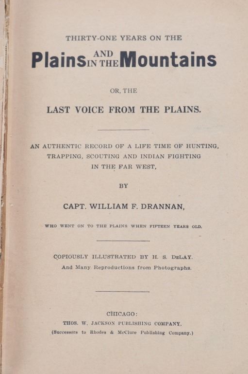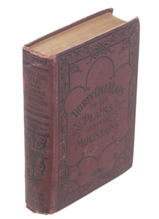 Featured in this lot is this 1900 first edition hardcover copy of "Thirty One Years on the Plains and in the Mountains” or “The Last Voice from the Plains" by Capt. William F. Drannan. The book records a lifetime of hunting, scouting, trapping, and native conflicts in the western frontier. The book features many illustrations and photo reproductions. The piece shows a green cover with silver gilt and designs. The book shows fair condition overall, with the front cover and front section of the spine separating. The book measurements are 8" x 5 1/2".