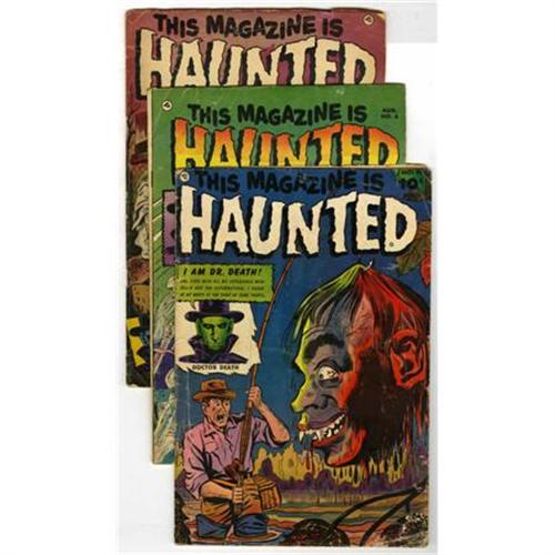 <B>This Magazine Is Haunted #6, 9, and 10 Group (Fawcett, 1952-53) Condition: Average GD/VG.</B></I> Includes #6, #9, and #10 (severed head cover). Sheldon Moldoff covers and art. Approximate Overstreet value for group = $125. <I> From the Madison Monk Collection.</B></I><BR><BR><b>Shipping:</b> Comics - Unslabbed (<a target="_blank" href="http://www.heritageauctions.com/common/shipping.php">view shipping information</a>)