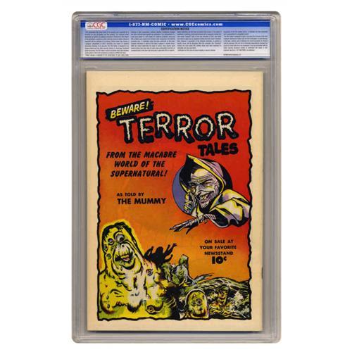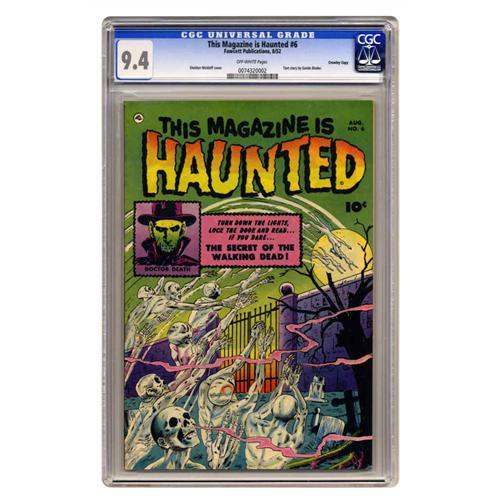 <B>This Magazine Is Haunted #6 Crowley Copy pedigree (Fawcett, 1952) CGC NM 9.4 Off-white pages.</B></I> From the files of Fawcett editor Wendell Crowley comes the highest-graded copy of this issue that CGC has certified to date (the only one graded above 8.0, in fact). The cover is by Sheldon Moldoff. Overstreet 2005 NM- 9.2 value = $275. CGC census 12/05: 1 in 9.4, none higher.
