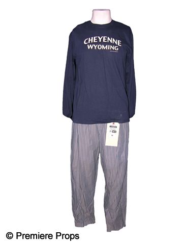 Straight from the set of "This Must Be The Place" (2011), this is Cheyenne (Sean Penn) screen worn, navy cotton long sleeve with Cheyenne Wyoming on the front 'Gildan' shirt, (size M) and blue with black and tan stripe 'Polo Ralph Lauren' PJ bottoms. (size M) Includes original production wardrobe tag.