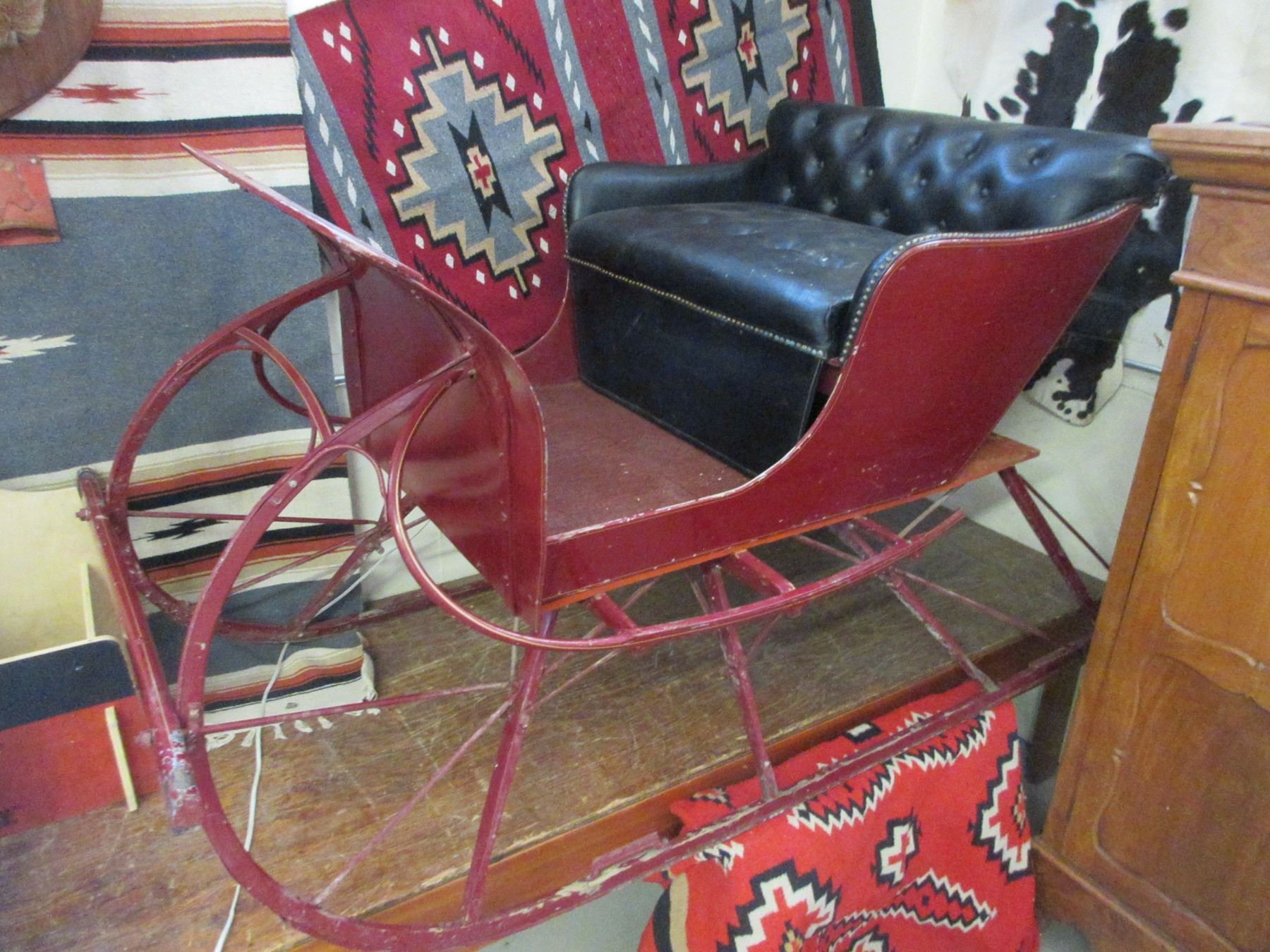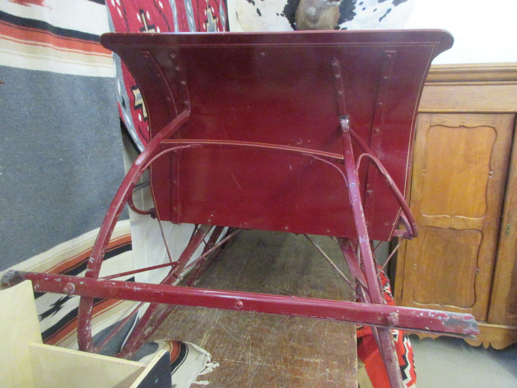 This Sleigh Was Restored Years Ago And Was Used Very Little After Restoration- Jump Seat- Dashboard Is Broken- Tear In Seat- Paint Chips- Broken Shaft- 44"H X 84"L X 38.5"D