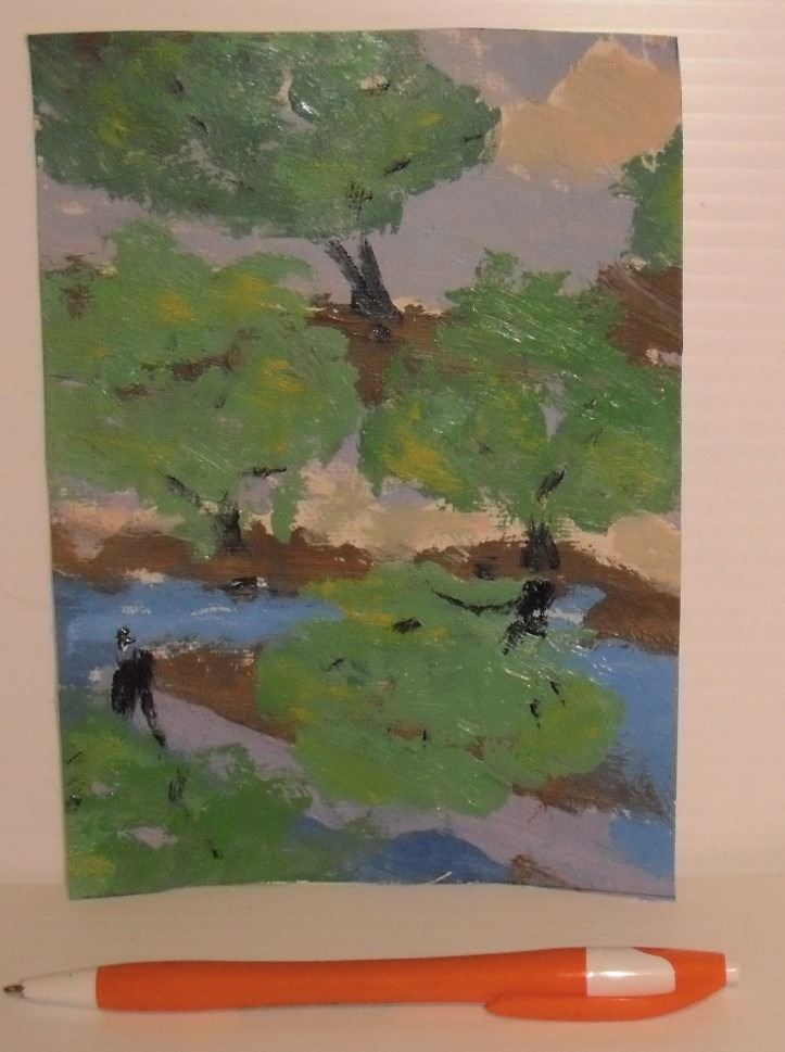 Original green landscape created by Artiste LangdonArt painting on canvas