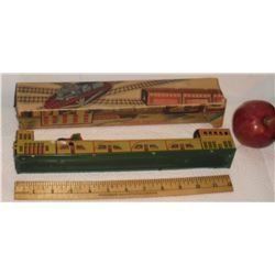 Very old as is tin metal train as is colourful interesting toy with part box for your collection for your fun collecting !!!