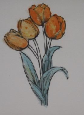 Original small tulips painting created by Artiste LangdonArt, with or no frame as you select ; hand painted, see also other views of it