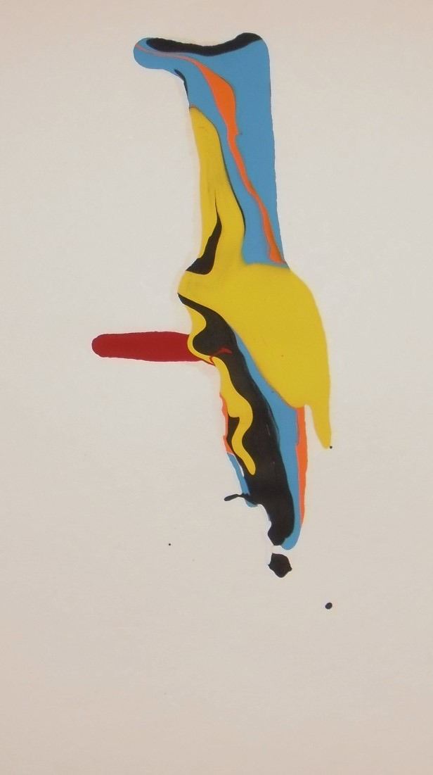 Like a stage scene, Conceptual art REVEALED for you to discover many times in this abstraction somewhat realistic being a Person #793 and water as LAKES : Blue Lakes #793, is this original MINIATURE on art paper-carton ap. 8 1/2 x 6" painting of Fun by Artiste LangdonArt, see also the other views of it, as too like a Spaceship as Camouflaged #793, and maybe of Planet Camouflaged secrets also #793 too OTHER SHAPE to guess for your